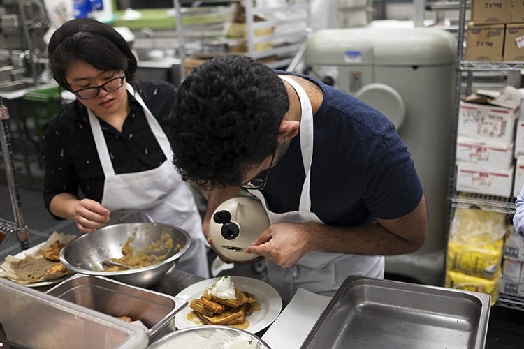 Branco, Su and their teammate Colette prepared to lay out the chicken curry, thinking carefully about the position of each element of their plate and what one student called the “sauce-to-rice ratio.”