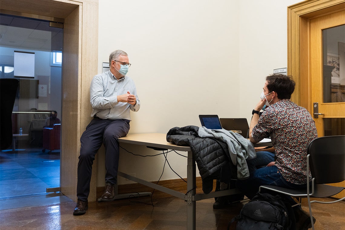 Professor John Robinson, left, teaches “Sustainability in the World: A Living Lab Course” (photo by Geoffrey Vendeville)