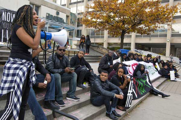 The rally and march was organized by Black at U of T. It was spurred by a number of recent incidents at universities and colleges in the United States as well as by concerns about racism at U of T. On its Facebook event page, Black at U of T wrote that they “stand in solidarity with black students across the united states that are in protest, currently experiencing anti-black racist violence and death threats by white supremacist groups on their campus for fighting back against the multiple forms of violence they experience daily for being black.”