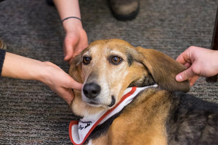 De-stress at exam time with Bella the therapy dog, a regular guest at Gerstein Science Information Centre (photo by Geoffrey Vendeville)