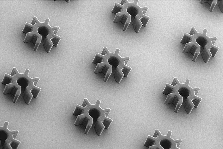 An array of “cogwheel-shaped” optoelectronic microrobots (photo courtesy of Shuailong Zhang)