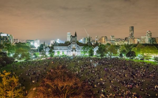 The Dunlap Institute for Astronomy & Astrophysics originally planned a public event at the observatory atop the McLennan Physical Laboratory building on Huron Street. But more than 13,000 expressions of interest on the institute’s Facebook page led the organizers to move the party to the wide open spaces of King’s College Circle.