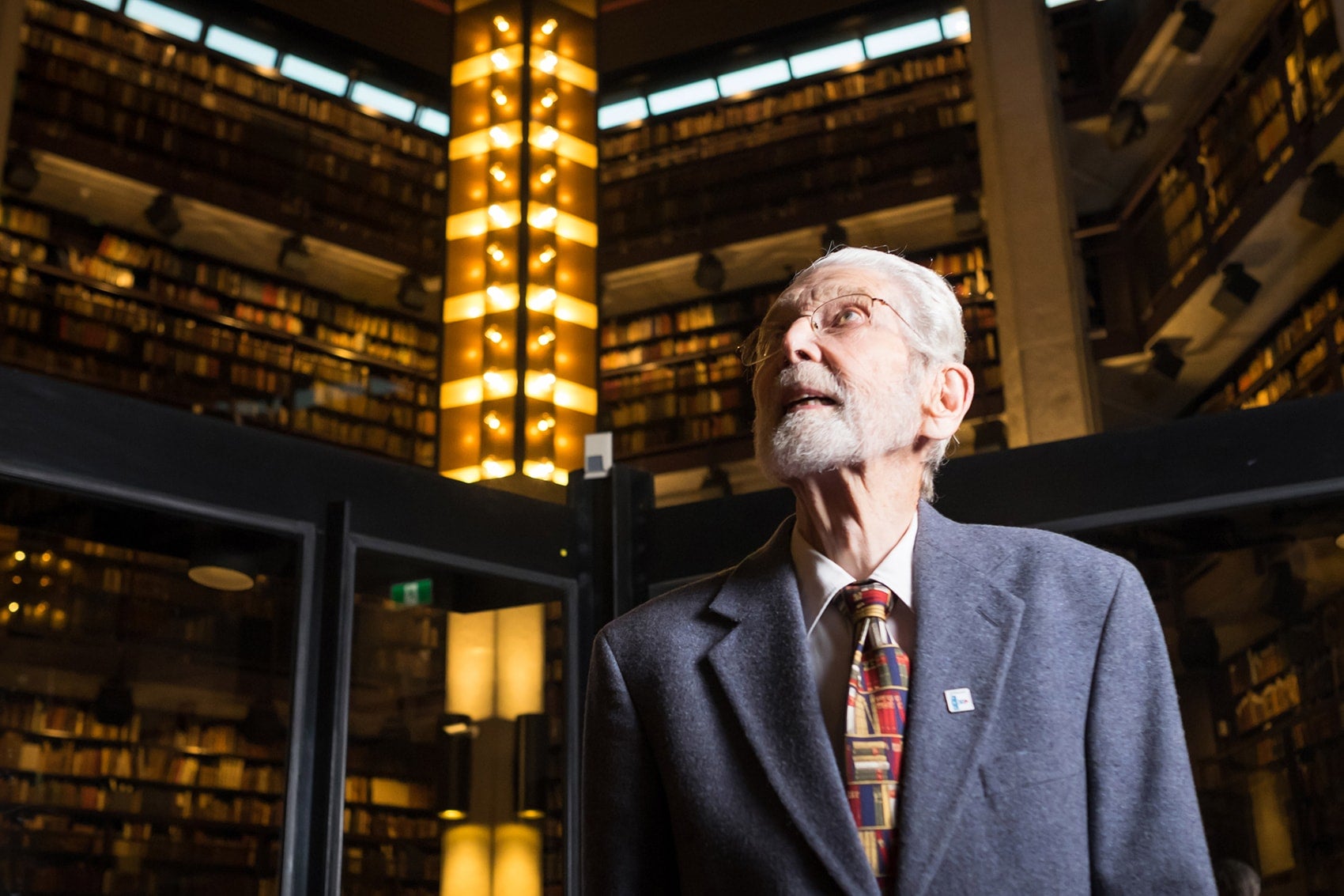 Now 98 years old, he returned to Robarts sporting a bookshelf tie to celebrate U of T Libraries' 125th anniversary. The building looks so different now, he said, that he can hardly find his way around anymore.