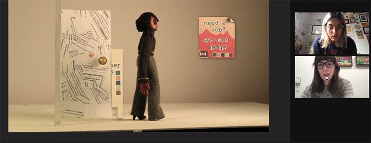 Elizabeth Kalbfleisch and animator Dani Elizondo (bottom right) worked together online to workshop a scene from the film.