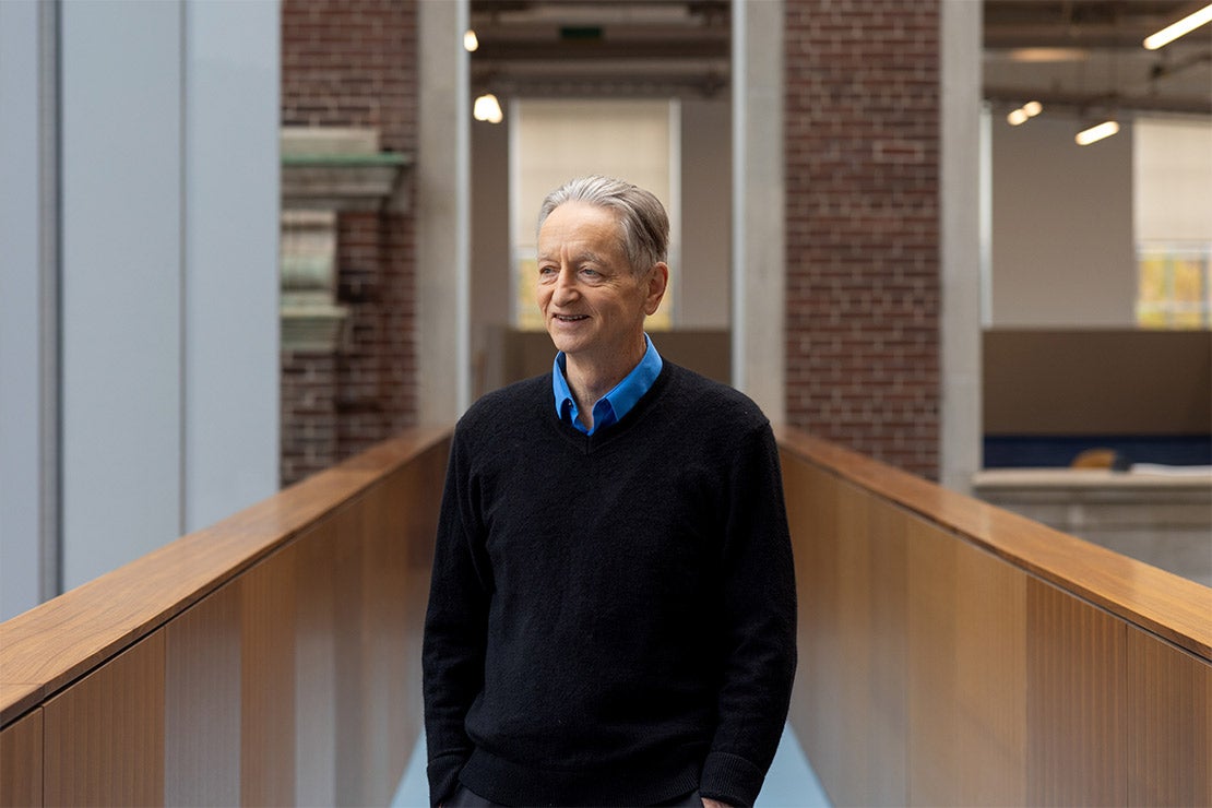These are some of the themes that will be addressed by Geoffrey Hinton – a U of T University Professor Emeritus of computer science, the “godfather of AI” and recipient of the 2024 Nobel Prize in Physics – at a fireside chat held at U of T’s Convocation Hall on June 25. Titled “Frontiers of AI,” the conversation will feature Hinton in dialogue with alumnus Nick Frosst – co-founder of AI language processing startup Cohere, who was Hinton’s first hire at Google Brain.