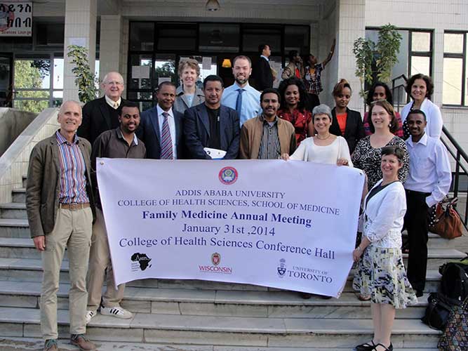 On average, 80 faculty from across U of T travel to Ethiopia every year as volunteers to provide academic training, teaching, support, research collaboration, clinical supervision and mentorship in 21 different programs. The program as a whole is making a difference in the east African nation, but Dr. Dawit Wondimagegn, chief executive director of the College of Health Sciences at Addis Ababa University, points to family medicine in particular.