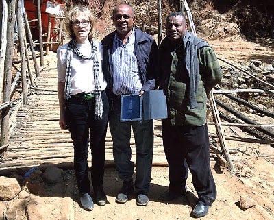 U of T's Dr. Clare Pain with Dr. Yonas Baheretibeb, chair of Addis Ababa's department of psychiatry, at a Holy Water site, the traditional way Ethiopians have sought treatment for physical and mental health issues. The Ethiopian program is involving local healers (courtesy of TAAAC)