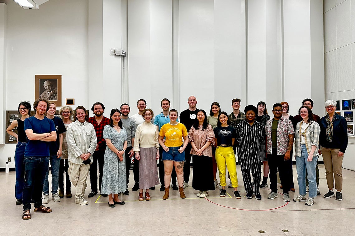 The cast and creative team behind a new production of Orfeo gather for rehearsal in the Geiger-Torel Room at U of T's Faculty of Music (supplied photo)