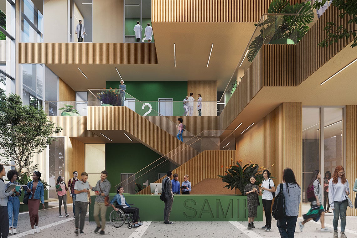 A rendering of the SAMIH building's ground floor (image courtesy of Diamond Schmitt Architects and MVRDV)