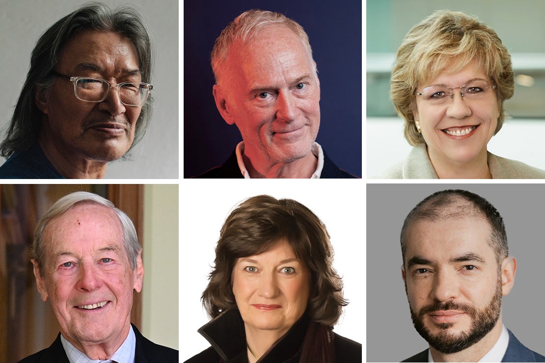 Clockwise from top left: Zacharias Kunuk, Alan Taylor, Janet Ecker, Ilya Sutskever, Patricia Jackson and David Wilson (supplied images, Kunuk: Raphaël Sandler, Kingulliit Productions. 2025)
