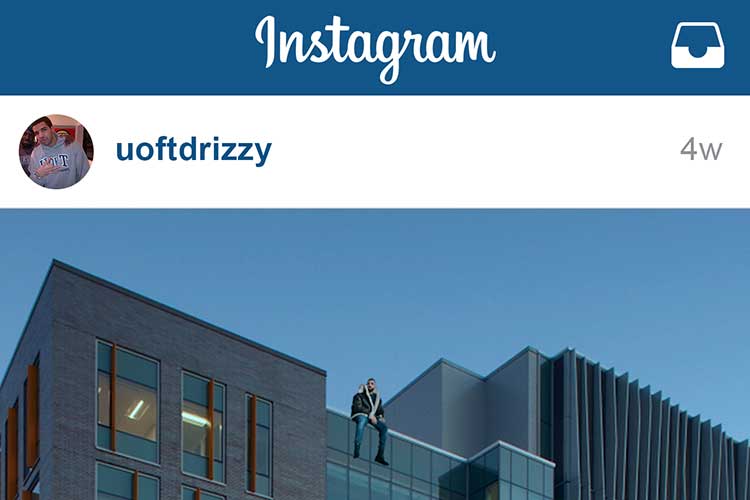 Called “pure gold” by Huffington Post, reimagined through an interactive U of T Scarborough campus tour by CBC Arts and picked up by news media around the globe, the @uoftdrizzy Instagram account became insta-famous this year and has more than 17,000 fans – including Drake – who follow, like and comment on the parody account.