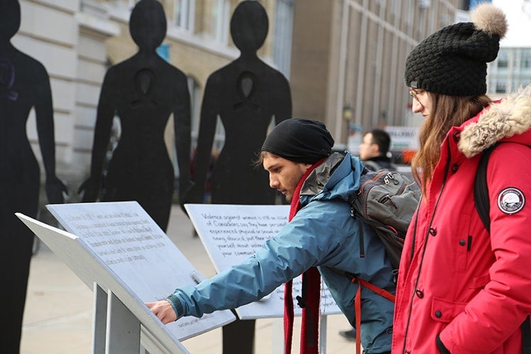 The installation reminded students about the tragedy and the broader issue of violence against women (photo by Kevin Soobrian)