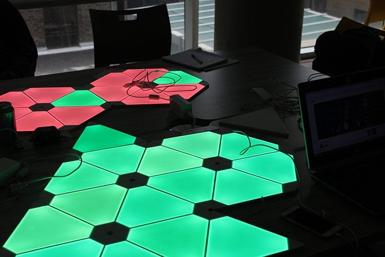 Nanoleaf's Aurora panels at a U of T hackathon (photo courtesy of U of T's department of computer science via Flickr)