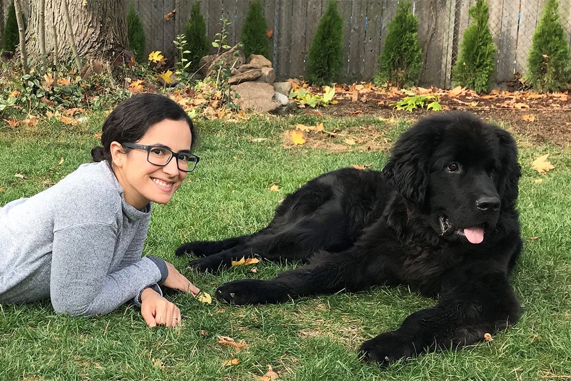 Sofia Bonilla, a U of T post-doctoral researcher who is preparing to launch a line of alternative-protein pet foods, already has her dog Snuffie gobbling up insect-based treats (photo courtesy of Sofia Bonilla)