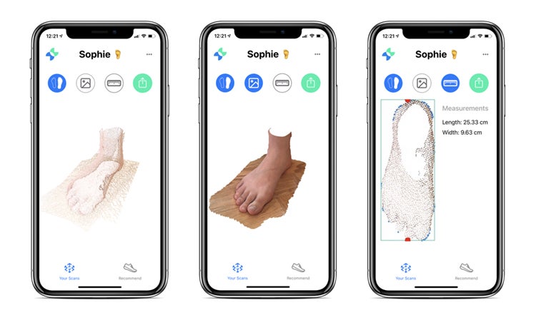 Using the iPhone’s TrueDepth camera, Xesto offers a free app that allows users to take pictures of their feet in order to obtain an accurate shoe size (image courtesy of Xesto)