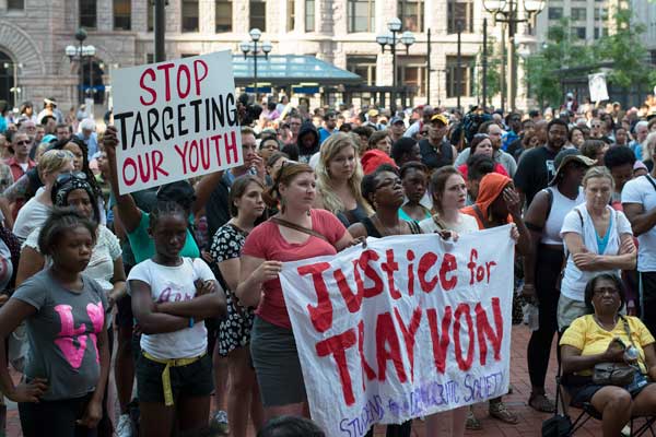 Certainly black male teenagers and young adults are seen in the dominant white culture as a criminal element, and that came through very clearly in the trial. One could also look at the extraordinary high levels of incarceration of young African-Americans in American prisons. As well, one could point to the ubiquitous racial profiling that has become part of policing in almost every major city. So there certainly is an association in the larger consciousness between black youth and criminality and instability, and that’s something that is contributing to how young people of color are perceived.