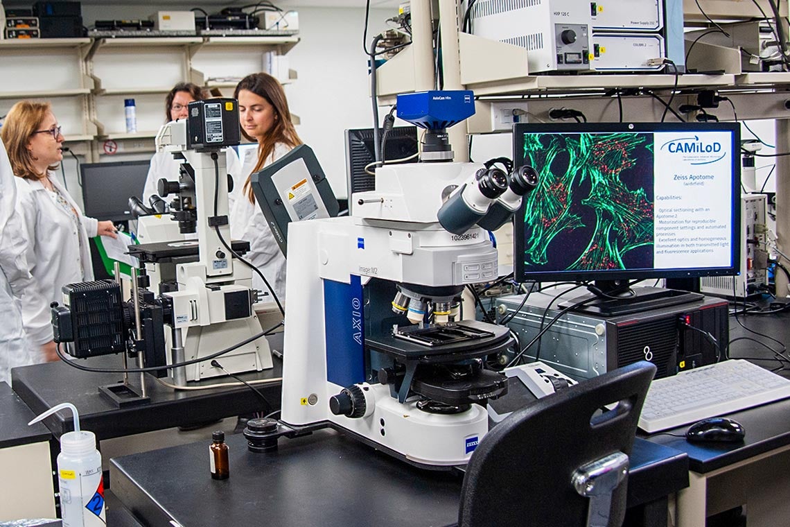 Housed in the faculty’s newly renovated research laboratories, CAMiLoD is where investigators of all stripes can rent time on some of the world’s best microscopy equipment to further their research. The available equipment includes: specialized, upright confocal microscopes with water-dipping lenses; epiflourescence microscopes with fully automated motorized stage and on-stage incubation and a Zeiss LSM 880 Airyscan, which allows users to see their samples in 4D at high speed and sub-diffraction resolution.