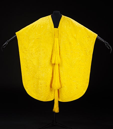 The ROM exhibit includes the Golden Cape (pictured left), the largest piece of cloth made entirely out of spider silk. It is only the second time the garment, made from the silk of 1.2 million Golden Orb spiders, has been exhibited (photo by Simon Peers and Nicholas Godley)