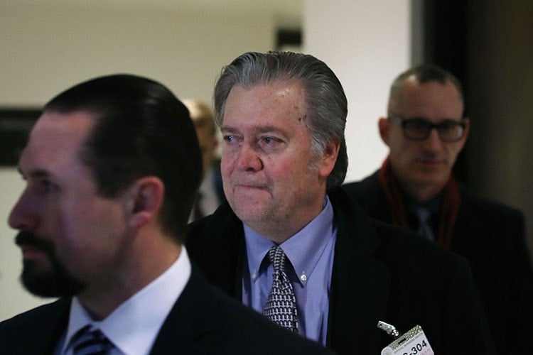 Steve Bannon, former adviser to U.S. President Donald Trump, arrives at a House Intelligence Committee closed door meeting, last week. The committee is investigating alleged Russian interference in the 2016 U.S. presidential election. Bannon has reportedly struck a deal with special counsel Robert Mueller's team to be interviewed by prosecutors rather than testify before the grand jury (photo by Mark Wilson/Getty Images)