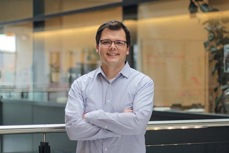 Keith Pardee, an assistant professor in the Leslie Dan Faculty of Pharmacy, is looking to make it faster and cheaper to carry out widespread tests for COVID-19 (photo by Jef Ekins)