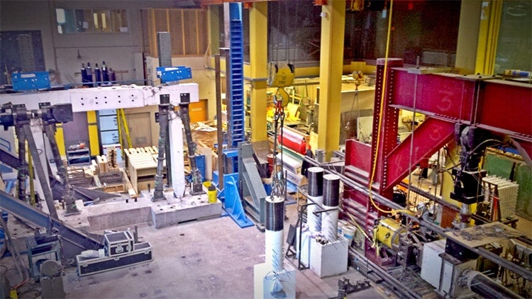 The Structural Engineering Laboratory at U of T contains advanced equipment to test prototypes of building components, including a proposed low-cost seismic isolation platform for mass implementation in India (photo by Farbod Pakpour)