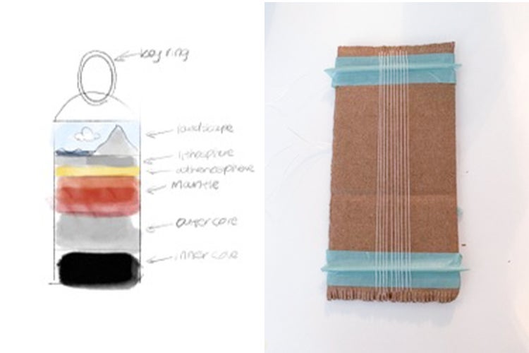 Mya Simpson’s sketch of the Earth’s layers, left, is seen next to the cardboard loom she and her partner created for the beading project (photo by Mya Simpson)