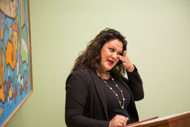 Her partner, children and grandkids were in audience at First Nations House to support her.