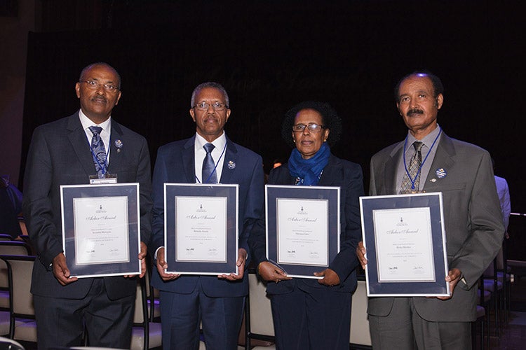 The Bikila Award Board of Directors, from left: Tessema Mulugeta, Behailu Atnafu, Haregua Getu and Birku Menkir (photo by Gustavo Toledo Photography)