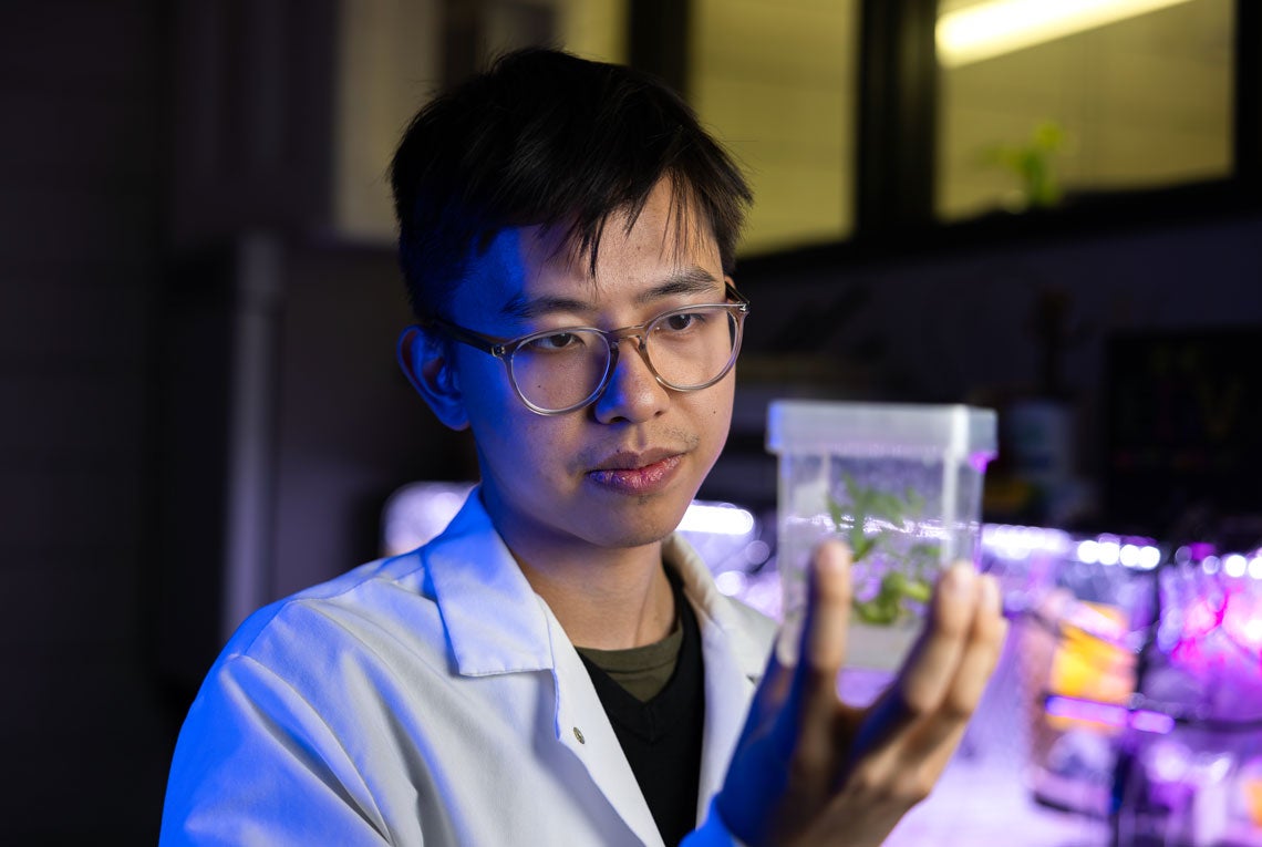 Jeff Chen, who recently completed a master’s in cell and systems biology at U of T Scarborough, discovered that waxes can break down to produce aldehydes (Photos by Don Campbell)