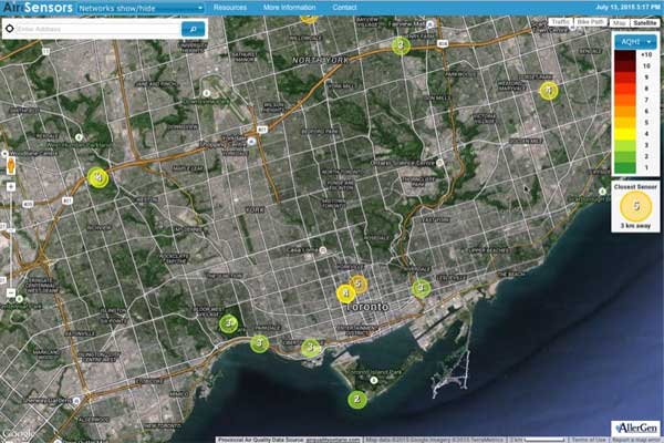 A group of researchers from the University of Toronto and the Allergy, Genes and Environment (AllerGen) Network thought members of the public might want to know the answer – so they've launched an interactive map that tracks air pollution across Toronto.