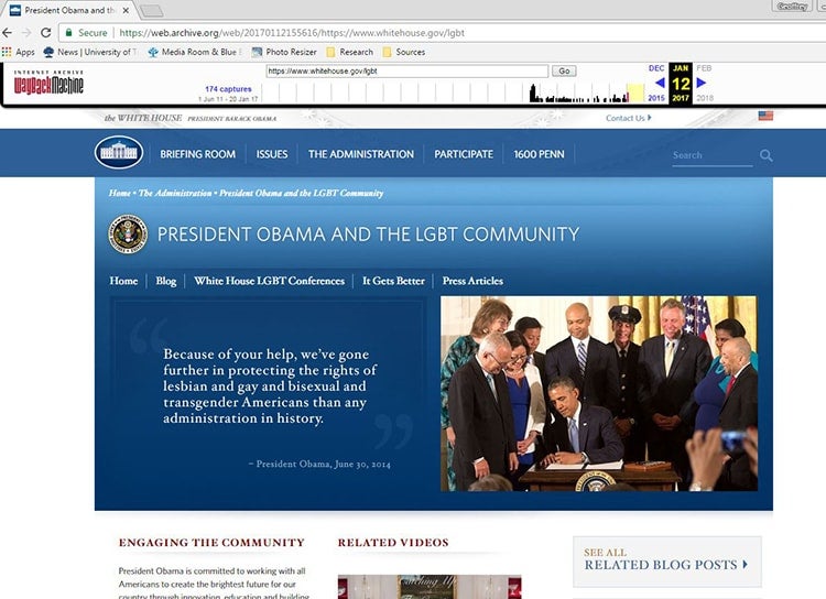 A snapshot of whitehouse.gov/lgbt in January before it was changed. Screenshot via the Internet Archive's Way Back Machine