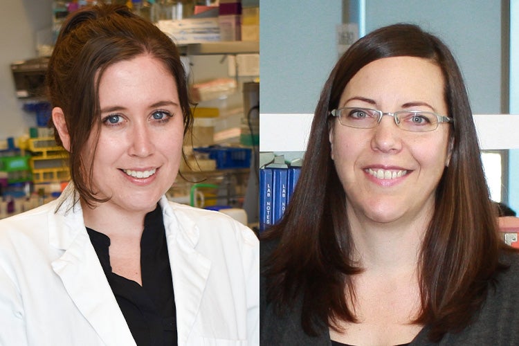 A study led by Véronique Taylor (left) and Karen Maxwell (right), research associate and professor, respectively, in the Temerty Faculty of Medicine, showed that levels of a protein called Zip were responsive to a bacterial communication system that senses how many other microbes are nearby (supplied images)