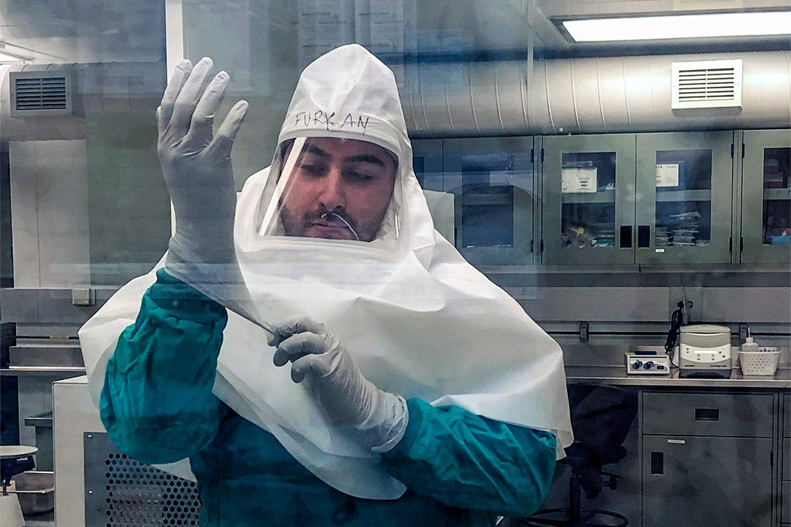 “Once you put on the suit, you don’t want to come out,” says Guvenc, who previously studied HIV, also a risk group three pathogen, and is accustomed to going without food, drink or bathroom breaks for an entire day. “It’s a very ascetic exercise. You perform the experiments until they are done, however long that may be,” he says.