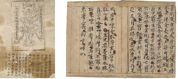 Goodman’s focus is not on the formal or official canonical texts recovered from Dunhuang, but on the “messy manuscripts,” and especially ritual miscellanies, that found their way to London, Paris and Beijing. She is looking at the working or practical canons, including liturgical books, primers, prayer sheets and personal notebooks, which give a clearer picture of what Buddhist study and practice actually looked like at this remote outpost. Tracing distinctive reading marks and scribal conventions, she examines manuscripts cobbled together on recycled slave documents, divorce decrees and other scrap paper (paper was a rare commodity). She looks under corrections that cover up errors like old-fashioned white-out.