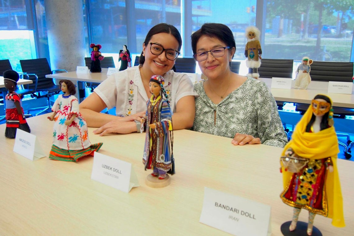 PhD student Miriam Castillo Orozco (left) and her mother María de Lourdes Orozco Cuautle, a historian, recently showcased a selection of Orozco Cuautle’s Indigenous doll collection at U of T Scarborough (photo by Chai Chen)