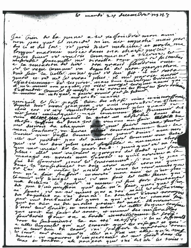 The first page of Mme de Graffigny’s December 24, 1743 letter to François-Antoine Devaux is pictured below. Each of her letters to Devaux were three to four pages in length.