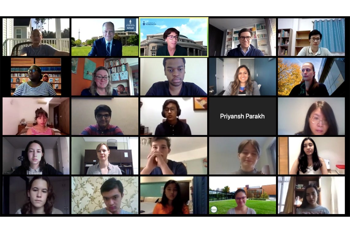 The new University of Toronto students, all recipients of the university’s prestigious Lester B. Pearson International Scholarship, were participating in a virtual reception on Zoom in anticipation of their eventual arrival on campus when COVID-19 travel restrictions allow.