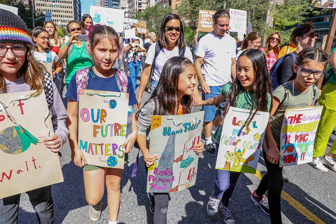 Youth march in downtown Toronto in 2019 during a Fridays for Future demonstration to raise awareness of the climate change issues (photo by Shawn Goldberg/SOPA Images/LightRocket/Getty Images)