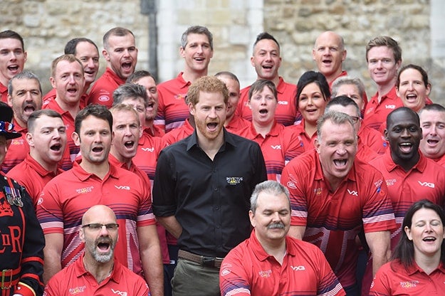 Prince Harry poses in London with the U.K. team for this month's Invictus Games in Toronto, which begin on Sept. 23 (photo by Jeremy Selwyn/Getty Images)