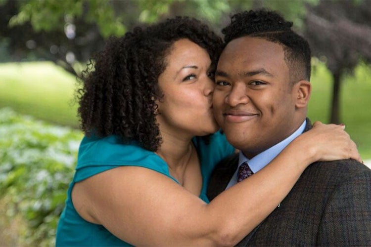 Cher Jones and her son, Kayne Munroe who is graduating with a degree in political science in November (photo by Geoffrey Vendeville)