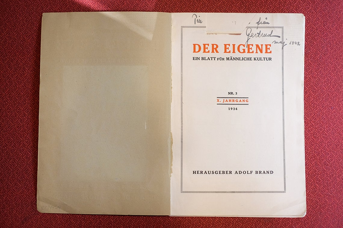 One of the opening pages of a 1924 edition of Der Eigene, said to be the world’s first gay magazine, is missing a piece. The carefully cut-out segment, a few centimetres across, removes the text of an inscription – likely the recipient’s name – that was pencilled in by someone named “Gertrud” nearly 20 years after the issue was first published.