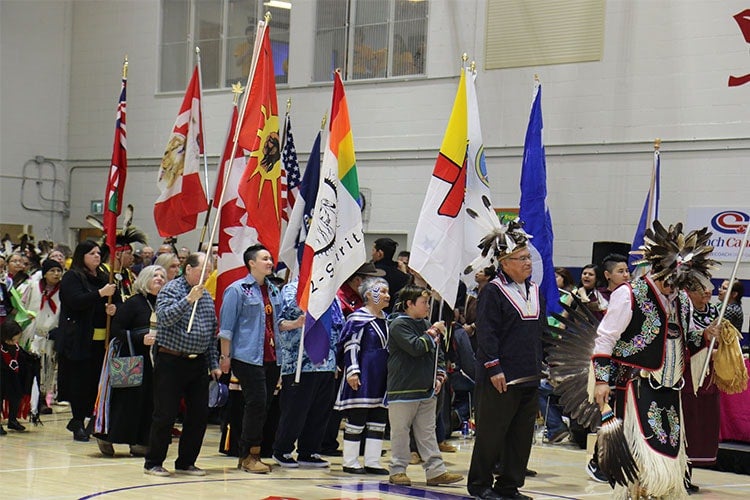 The powwow officially began with the Grand Entry at 1 p.m., featuring prominent members of U of T’s community, including Susan McCahan, vice provost, innovations in undergraduate education, Indigenous faculty, and provincial and federal dignitaries. They were part of a procession into the gymnasium, some bearing flags.