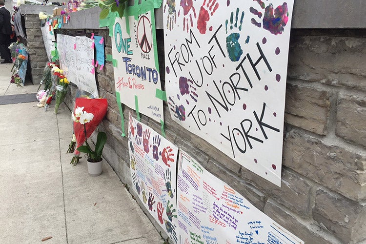U of T students made a poster for a makeshift memorial at Yonge and Finch (photo courtesy of Leila Atri)