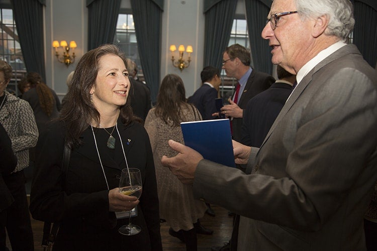 U of T Faculty of Applied Science & Engineering Professor Molly Shoichet (left) and Biochemistry Professor Reinhart Reithmeier (right) attended the event (photo by Johnny Guatto)