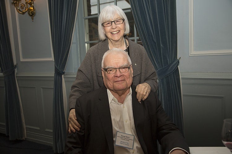 Order of Canada recipient George Baird (seated), the former dean of the John H. Daniels Faculty of Architecture, and Elizabeth Baird (standing) also attended the event (photo by Johnny Guatto)