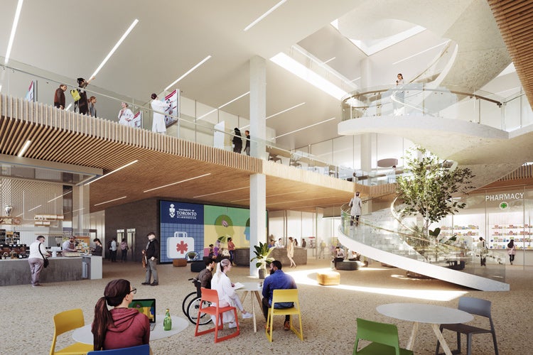 A rendering of the atrium in the upcoming Scarborough Academy of Medicine and Integrated Health (SAMIH) at U of T Scarborough.