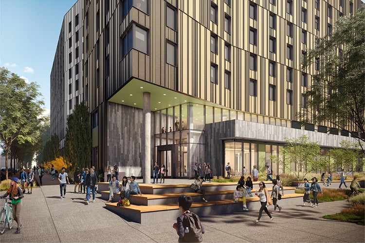 The residential floors will include a mix of single- and double-occupancy bedrooms, fully accessible suites, study spaces and common areas including kitchen and lounge spaces. The building will also have a rooftop garden and terrace, a food servery and dining hall, event space and mixed-use spaces for workshop-style learning. It will also house the Office of Student Experience & Wellbeing as well as Student Housing & Residence Life.