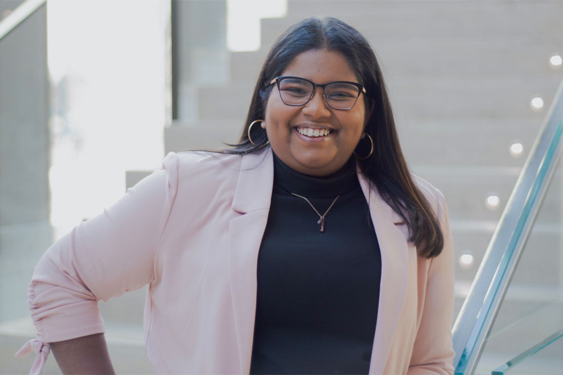 New U of T Scarborough graduate Delicia Raveenthrarajan is a mental health advocate, public speaker and music educator (supplied image)