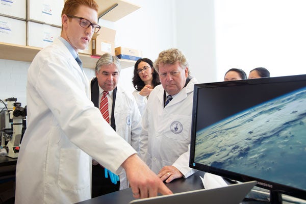 Before announcing this year’s winners, the Honourable Ed Holder, Minister of State (Science and Technology) joined the Honourable Peter Van Loan (U of T alumnus and Leader of the Government in the House of Commons) to tour the cardiac tissue engineering lab led by Professor Milica Radisic. It’s where doctoral student Montgomery aims to overcome the challenges associated with creating an injectable patch of living, human tissue into patients with damaged hearts. (See a photo gallery of the tour.)