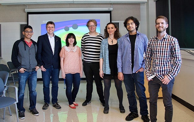 Members of the LIGO team at CITA (from left to right): Jaykumar Patel, Harald Pfeiffer, Heather Fong, Carl-Johan Haster, Katerina Chatziioannou, Prayush Kumar and Aaron Zimmerman (photo by Diana Tyszko)